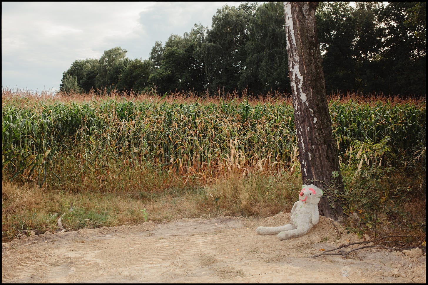 I first spotted this teddy bear from a train window near some railway earthworks. Leaning against a birch tree and daubed in paint, it was clearly the construction crew’s mascot. A few weeks later, I saw its remains from the train - someone eventually decided it had to go. Fortunately, I had cycled out there before the end came and captured it with the Canon 6D and the 40mm pancake.